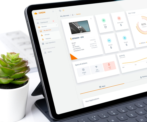 El i3RDM permite a los empleados de soporte y administradores de TI administrar y monitorear una flota completa de pantallas interactivas i3TOUCH desde cualquier lugar y en cualquier momento, lo que garantiza que siempre tendrán el control total.